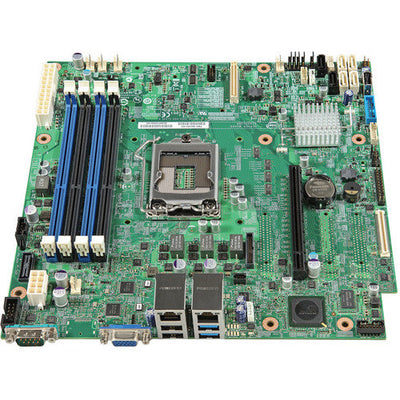 The S1200V3RPO Intel Server Motherboard from Intel is a general purpose, single socket board supporting an Intel Xeon E3 processor and four DIMMs. It is equipped with two USB 2.0 and two USB 3.0 ports, six SATA ports, two LAN ports, and one LGA 1150 socket. These hardware features are accompanied by a 32GB maximum memory capacity with a maximum memory bandwidth of 25.6 GB/s, ensuring fast, efficient flow of data. This server motherboard also features integrated graphics support with a VGA output. Expansion options include PCIe x8 generation three slot and an I/O expansion module to easily connect compatible peripherals.
